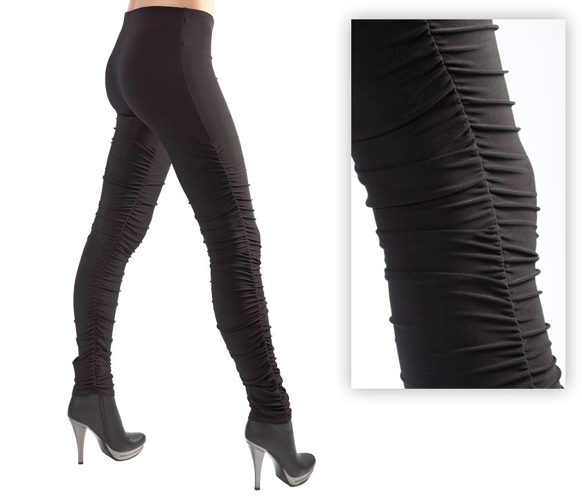 В боковые швы вставлена резинка, присбаривающая ткань и позволяющая изменять длину по Вашему желанию. Длина по внутреннему шву от75 до 100см.