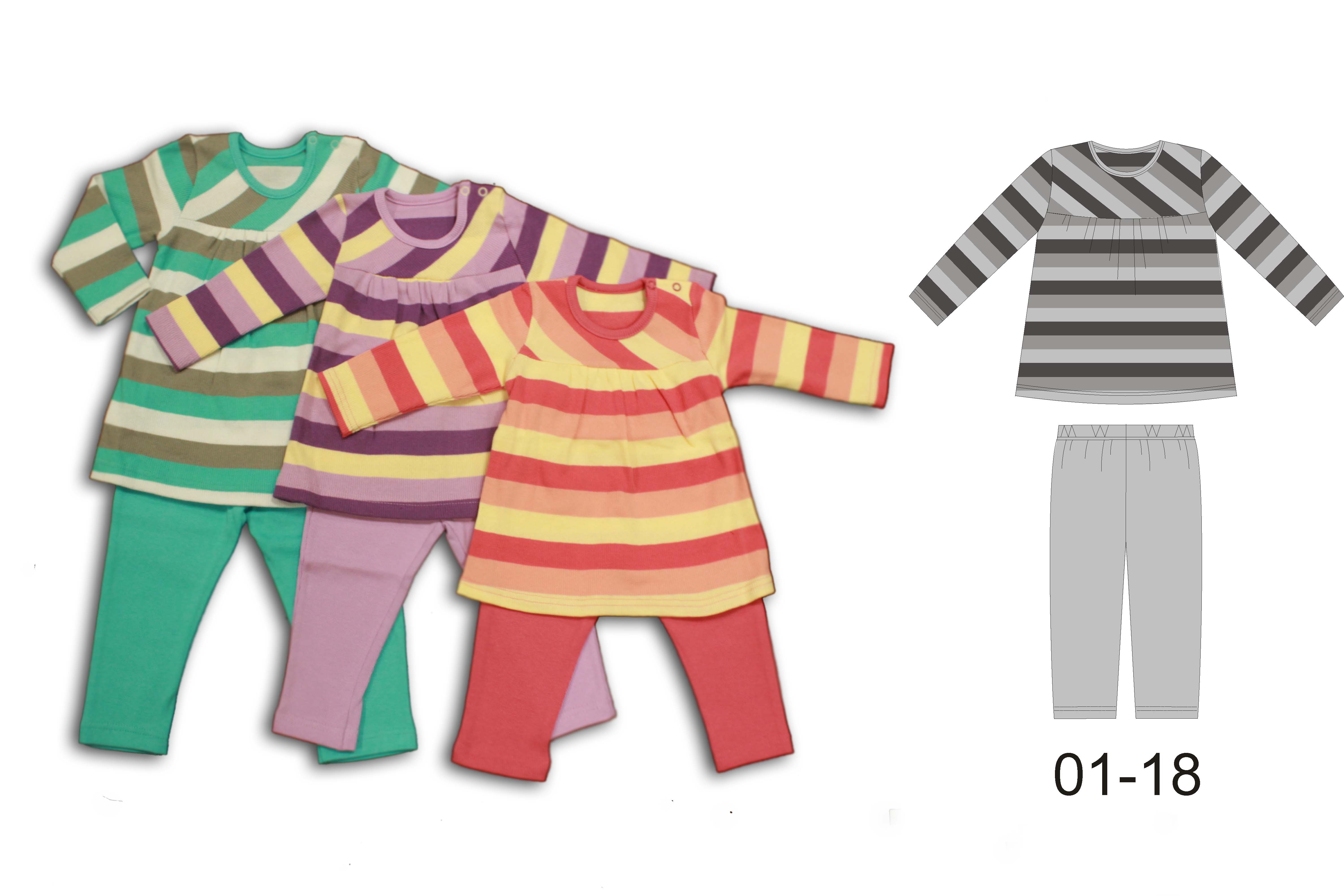 Комплект для девочек. Кашкорсе с подчесом, 95% х/б, 5%лайкра. Кофта – полочка с кокеткой, сборка под кокеткой, застежка в плечевом шве, вырез горловины окантован, рукав длинный. Брюки – длинные, зауженные к низу на резинке. Низ рукава, кофты и брюк подшиты на 2-игольной машине.