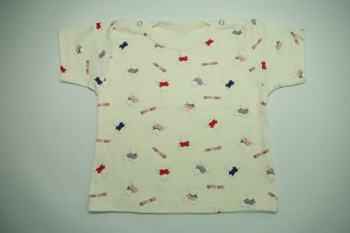 Интерлок 100% х/б, гладкокрашеный + печать на полочке или набивка. Фигурная горловина обработана на окантователе, с застежкой на плечевых швах. Рукав короткий.